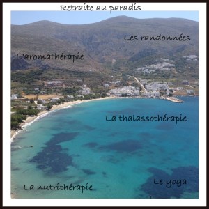 Son nom est l’îled’Amorgosen Grèce et plus précisément le village d’Aegalis…Une chose incroyable cet endroit est près de nous à vol d’oiseau mais il faut 3 heures d’avion de Paris et 8h de bateau…pour rallier cette merveille.Une fois arrivée à bon port, je me sens dans mon élément à tous points de vue, comment dire? Si j’écrivais un livre mon titre serait : » Une naturopathe en pays hellénistique » bref tous mes sens sont en éveil ce qui correspond bien à la naturopathie qui est holistique (traitement du corps dans son ensemble ). Bon présage …!