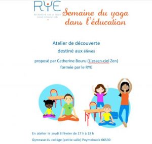 En attendant, je vous propose la 👉🏼 « Semaine du Yoga dans l’éducation« qui est organisée par le R.Y.E. (association agréée par le ministère de l’éducation nationale). Ses journées étendent ses bras partout en France, voire plus loin en Europe. Des enseignants et des éducateurs offrent un temps de JOIE pour les 40 ans de cette association créée par Micheline Flak (professeure d’anglais). Elle dispense des cours de Yoga dans l’enseignement et ses rangs ont gonflé en voulant chercher des solutions d’apaisement. Je suis fière de faire partie de cette aventure.