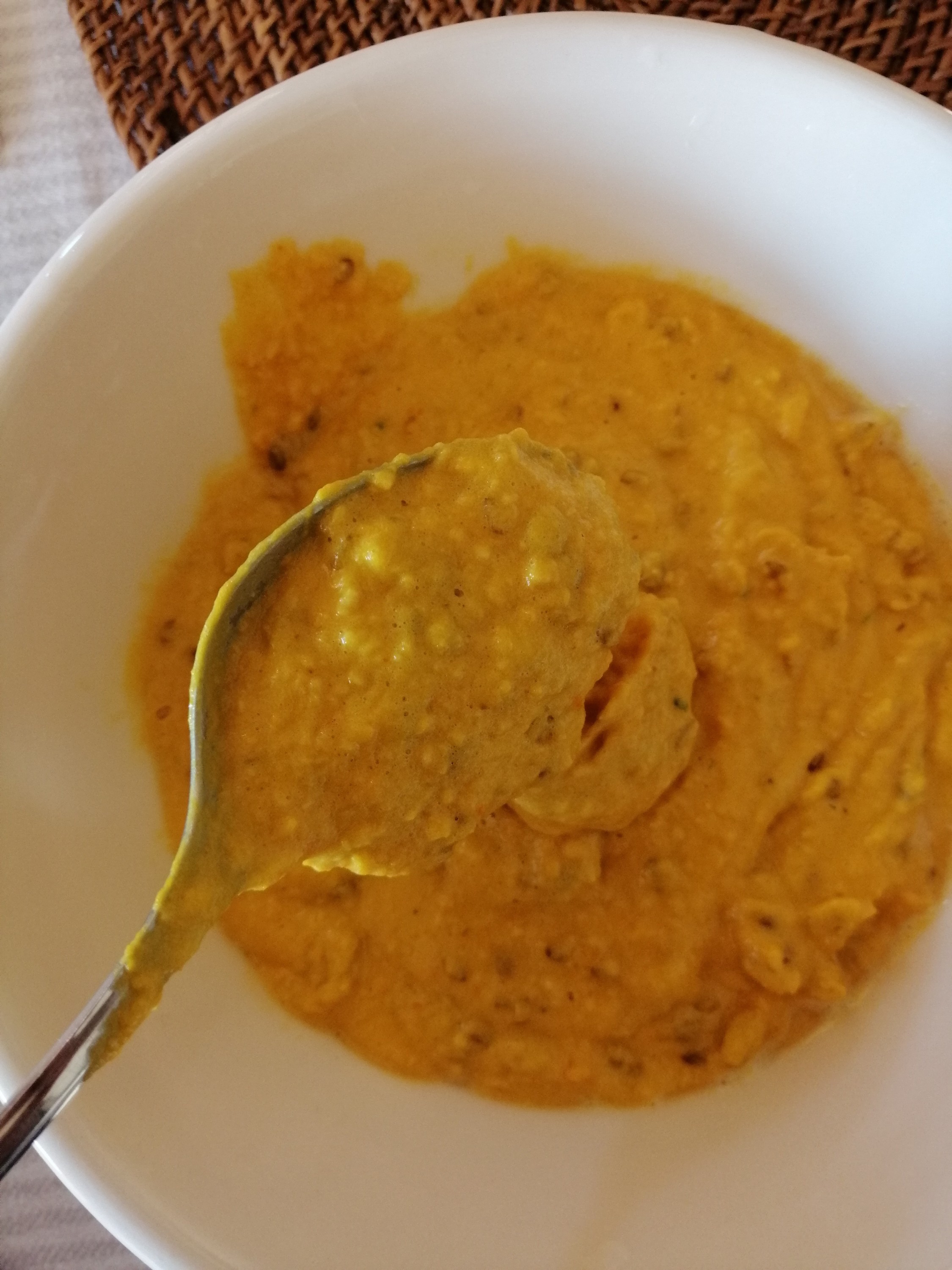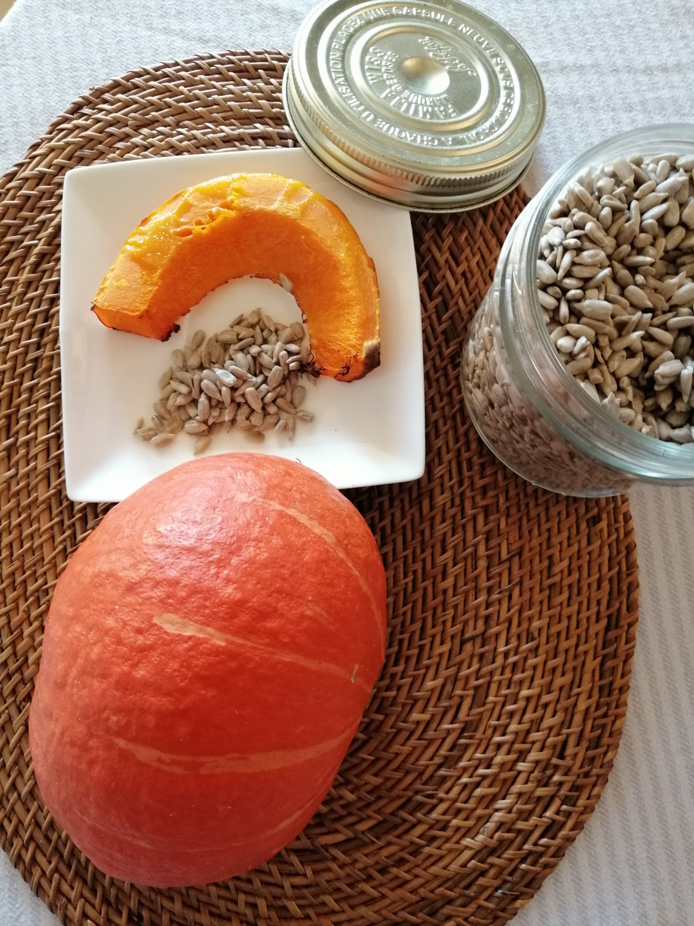 Mixer le potimarron avec les œufs, les flocons d’avoine, les gaines de lin, le gomasio, l’ail et le gingembre.