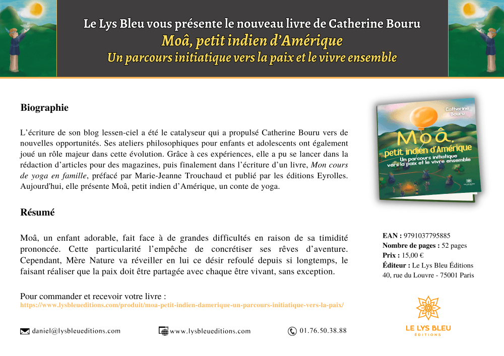 Mon deuxième bébé papier est né : Il s’agit d’un livre jeunesse qui a pour objectif d’amener la paix et le vivre sur le chemin des enfants à travers une séance de yoga illustrée